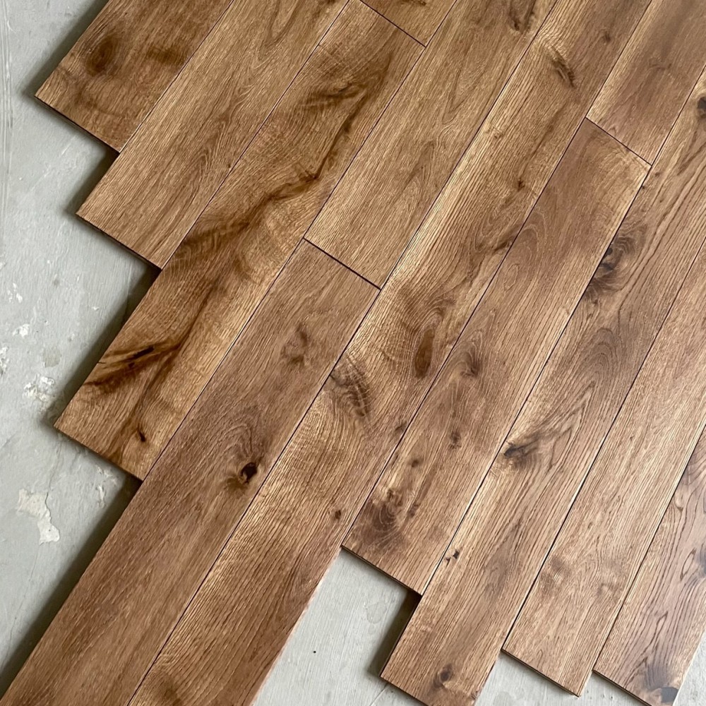 Инженерная доска Eparket производится в России по европейским стандартам. Состоит из двух слоев: верхний слой — ламель отборного дуба толщиной 3 мм, нижний — влагостойкая фанера 12 мм. Доски имеют фаску со всех сторон и брашированную поверхность, покрытую тремя слоями лака.