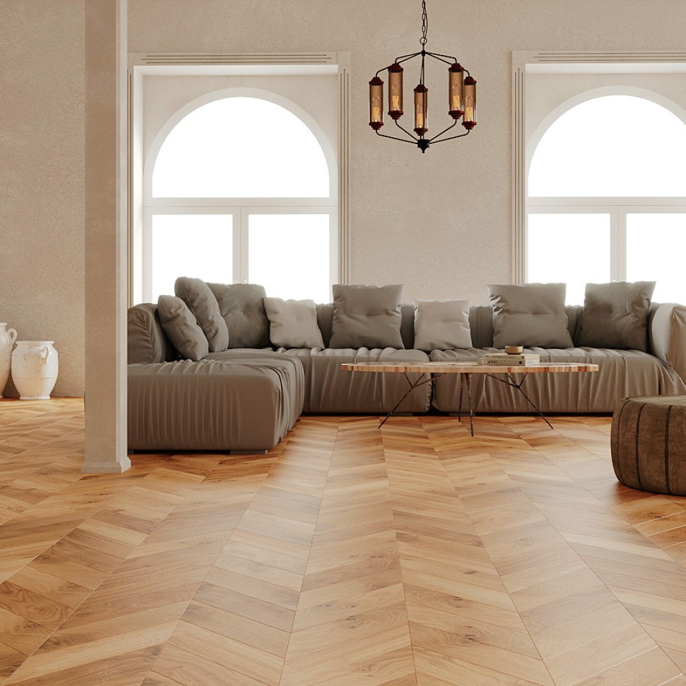 Инженерная доска Gran Parte изготавливается из древесины дуба, которая делится на разные сортировки в зависимости от наличия сучков, трещин и заболони. Доска состоит из двух слоев: верхний — ламель отборного дуба, нижний — влагостойкая фанера.
