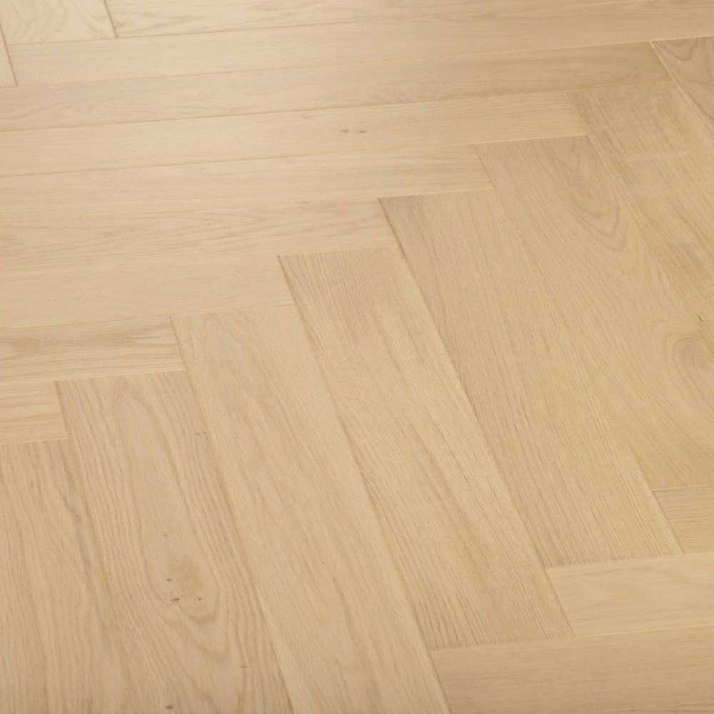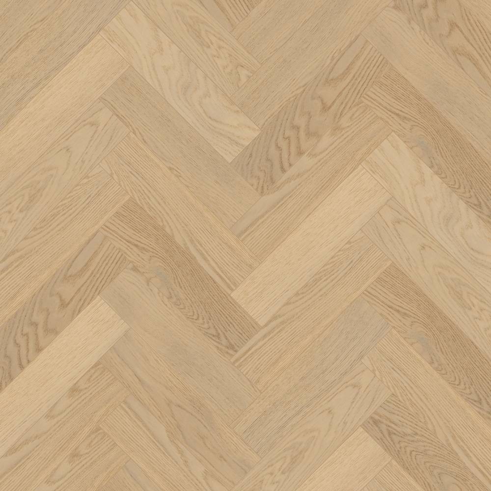Инженерная доска Lab Arte Дуб 2006 в дизайне «венгерская елка» производится в сортировке Натур, где характерны активные вариации цветовых оттенков. На поверхности допускаются живые сучки (до 20 мм) и темные сросшиеся сучки с трещинами (размером до 15 мм и не более 3 шт. на погонный метр), которые зашлифованы и зашпатлеваны в тон покрытия.