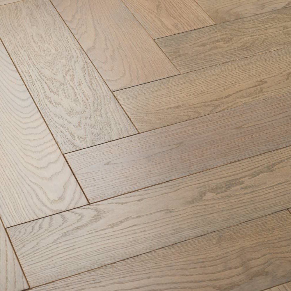 Инженерная доска Lab Arte Дуб Бург в дизайне «венгерская елка» производится в сортировке Натур, где характерны активные вариации цветовых оттенков. На поверхности допускаются живые сучки (до 20 мм) и темные сросшиеся сучки с трещинами (размером до 15 мм и не более 3 шт. на погонный метр), которые зашлифованы и зашпатлеваны в тон покрытия.