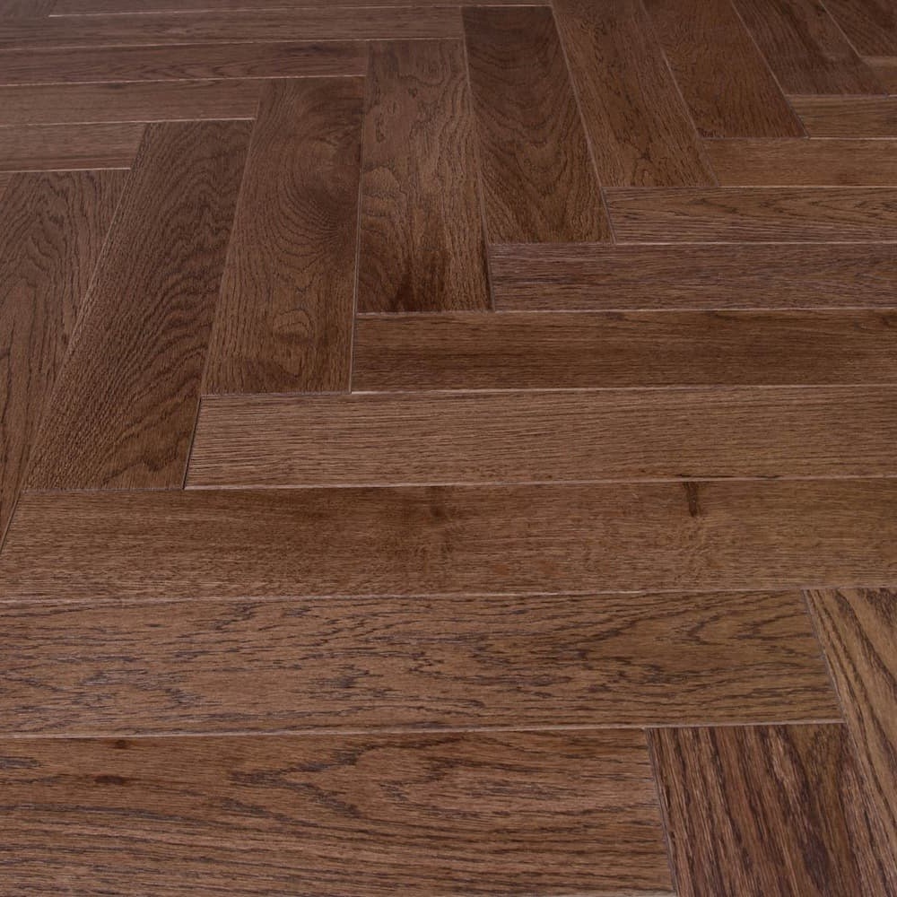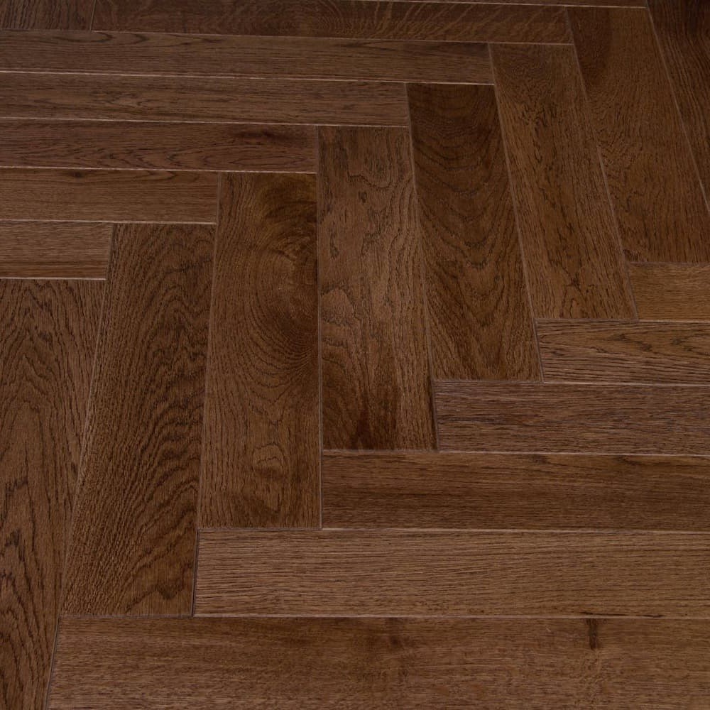 Инженерная доска Lab Arte Дуб Табак в дизайне «венгерская елка» производится в сортировке Селект — для нее характерны естественные цветовые перепады как между планками, так и в пределах одной планки, а также наличие живых сросшихся сучков в цвет древесины диаметром до 10 мм. Кроме того, допускаются темные сросшиеся сучки (размером до 5 мм и не более 3 шт. на погонный метр), зашпатлеванные в тон покрытия.