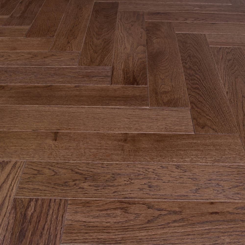 Инженерная доска Lab Arte Дуб Табак в дизайне «венгерская елка» производится в сортировке Селект — для нее характерны естественные цветовые перепады как между планками, так и в пределах одной планки, а также наличие живых сросшихся сучков в цвет древесины диаметром до 10 мм. Кроме того, допускаются темные сросшиеся сучки (размером до 5 мм и не более 3 шт. на погонный метр), зашпатлеванные в тон покрытия.