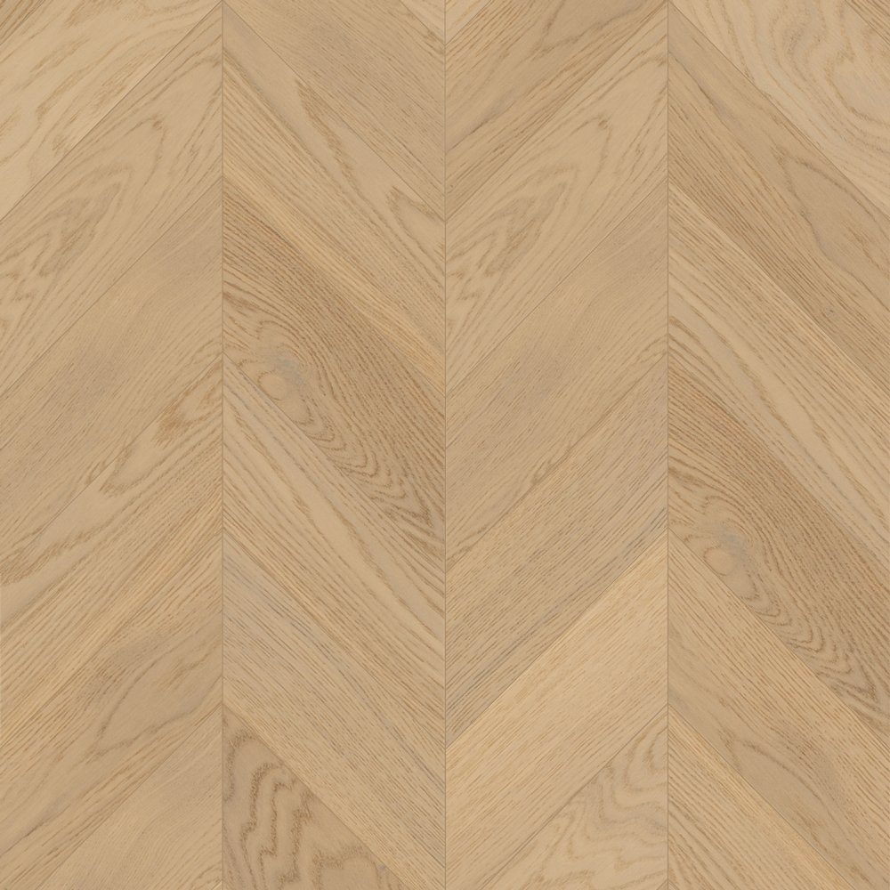 Инженерная доска Lab Arte Дуб 2006 в дизайне «французская елка» (с углом запила 45°) производится в сортировке Натур, где характерны активные вариации цветовых оттенков. На поверхности допускаются живые сучки (размером до 20 мм) и темные сросшиеся сучки с трещинами (до 15 мм и не более 3 шт. на погонный метр), которые зашлифованы и зашпатлеваны в тон покрытия.