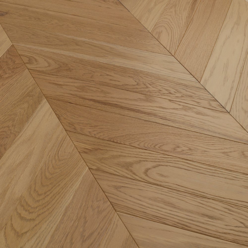 Инженерная доска Lab Arte Дуб Бург в дизайне «французская елка» (с углом запила 45°) производится в сортировке Натур, где характерны активные вариации цветовых оттенков. На поверхности допускаются живые сучки (размером до 20 мм) и темные сросшиеся сучки с трещинами (до 15 мм и не более 3 шт. на погонный метр), которые зашлифованы и зашпатлеваны в тон покрытия.