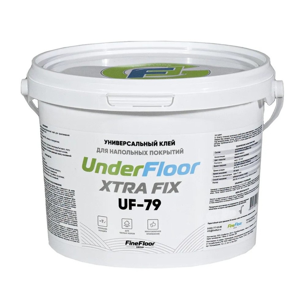 Универсальный водно-дисперсионный клей Underfloor Xtra Fix UF 79 для приклеивания напольных покрытий. Подходит для LVТ и кварцвиниловых напольных покрытий в плитке и рулонах, текстильных покрытий на основе ПВХ, латекса и полиуретана и иглопробивного ковролина. Для полов с подогревом. Морозостойкость до 5 циклов.