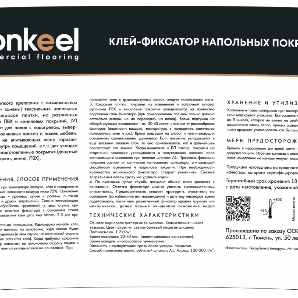 Клей-фиксатор для фиксации (липкого крепления с возможностью легкого удаления или замены) текстильных напольных покрытий, в т.ч. ковровой плитки, на различных подложках, рулонных ПВХ и виниловых покрытий, LVT плитки. Подходит для полов с подогревом, выдерживает нагрузку от роликовых кресел и ножек мебели. Для впитывающих и не впитывающих влагу горизонтальных оснований внутри помещений, в т.ч. для укладки на прочно лежащие, подготовленные покрытия (дощатый пол, лакированный паркет, винил, ПВХ). Для коммерческого применения.