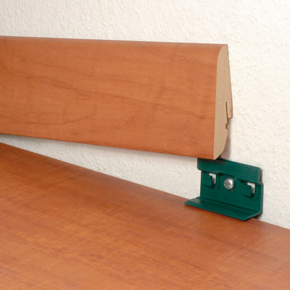 В упаковке 30 клипс, их хватит для установки 12 метров плинтуса. Клипсы для монтажа плинтуса используют только при идеально ровных стенах, иначе плинтус не будет вплотную прилегать к стене.