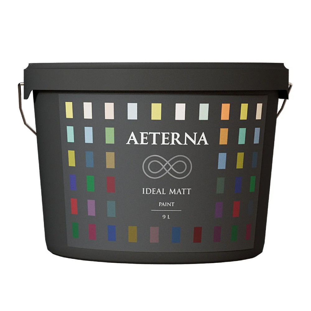 Aeterna Ideal Matt — матовая интерьерная краска для стен, потолков и обоев в жилых и коммерческих помещениях с нормальным уровнем влажности, например, в офисах, магазинах, гостиных, спальнях и прихожих. Обладает высокой укрывистостью, а также эффективно рассеивает свет, благодаря чему скрывает мелкие дефекты основания.