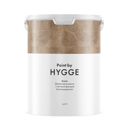 Hygge Kvarts — высокоукрывистая декоративная краска с песчаной фактурой. Содержит фракционный наполнитель, который при нанесении образует различные эффекты на поверхности: бетон, сатинирование, песочные микроструктуры. Колеруется по цветовым раскладкам HYGGE Paint, а также по веерам ведущих мировых колеровочных систем.