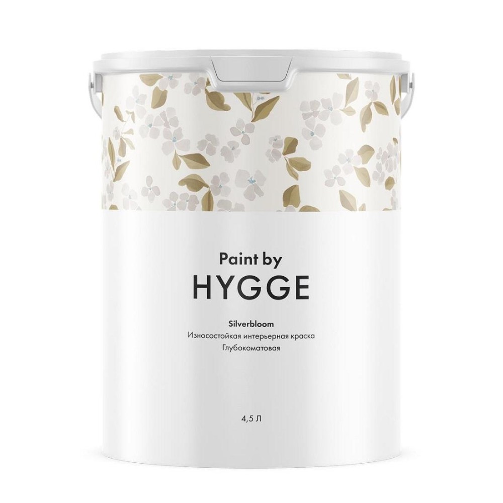 Hygge Silverbloom — глубоко-матовая краска для стен и обоев под покраску в сухих помещениях со средней и высокой эксплуатационной нагрузкой. Рекомендована для гостиных, детских комнат, а также для коммерческих помещений, как офисы или торговые залы. Отличается повышенной износостойкостью и содержит добавки от плесени и грибка. Поверхности окрашенные Silverbloom устойчивы к многократному мытью. Подходит для нанесения на: оштукатуренные поверхности, бетонные и кирпичные стены, гипсокартон, ДВП и OSB плиты, обои под покраску и полиуретановую лепнину. Также может применяться для окрашивания потолков.