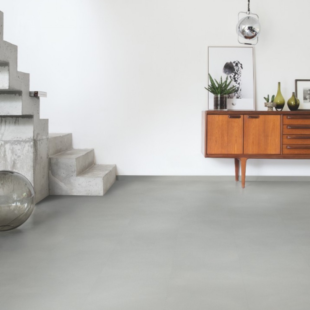 Виниловый пол Quick Step Шлифованный бетон светло-серый AMGP40139 33 класса нагрузки с клеевым типом соединения предназначен для установки в помещениях с высокой проходимостью: рестораны, магазины и пр.