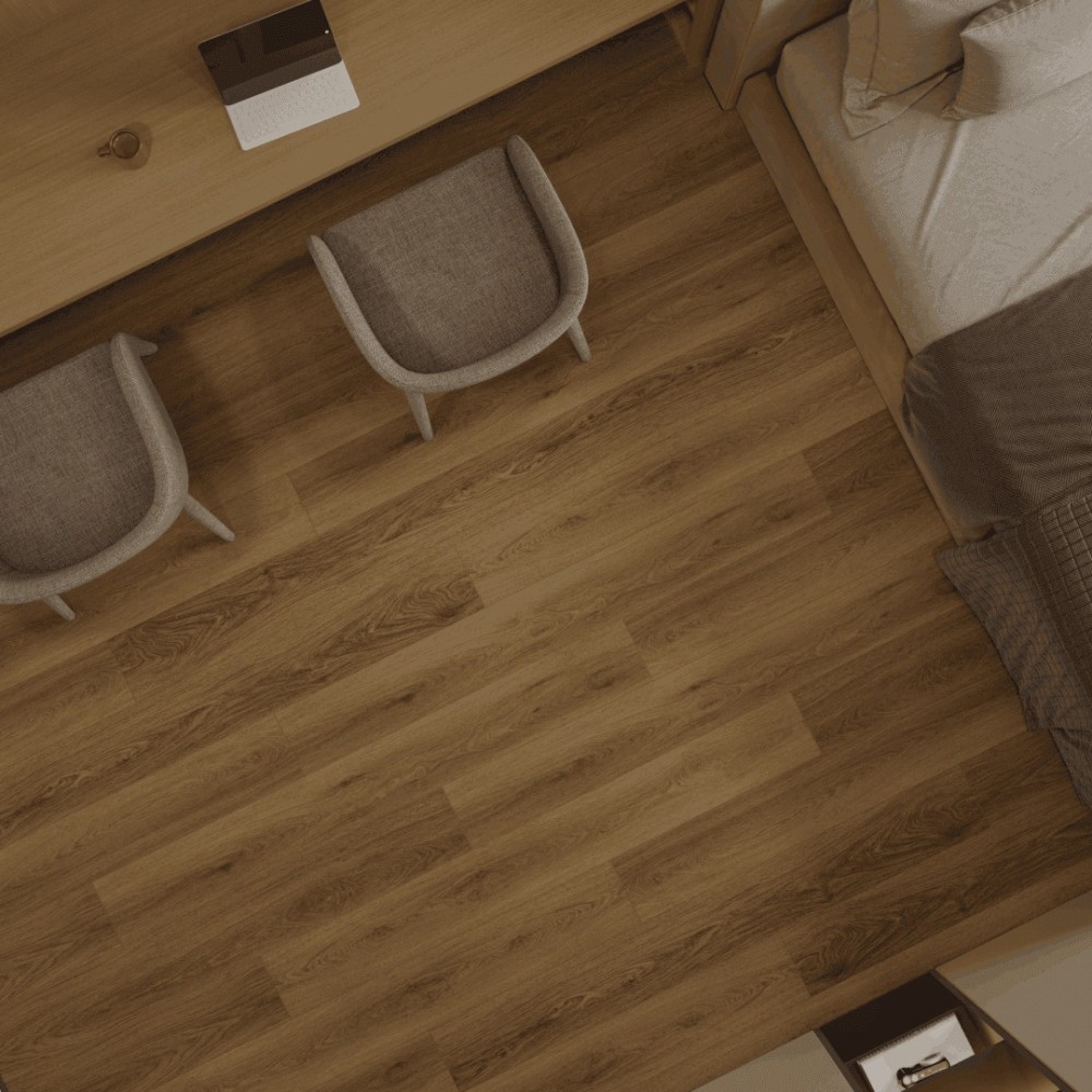 Покрытию присвоен 43 класс нагрузки, что делает его идеальным решением не только для жилых, но и коммерческих помещениях даже с самой высокой эксплуатационной нагрузкой. На каждой доске есть четырехсторонняя фаска, а поверхность покрыта полиуретановым слоем толщиной 0,55 мм и имеет точное тиснение, повторяющее структуру натурального дерева.