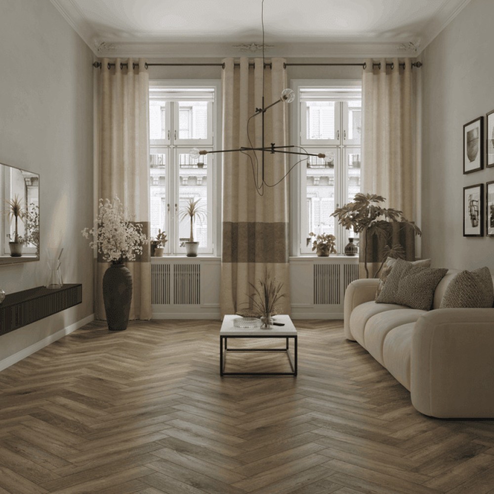 Прочные и полностью водостойкие виниловые полы Norland Parquet S Vienna выполнены на каменно-полимерной SPC основе, гарантирующей жесткость и геометрическую стабильность. Благодаря 34 классу нагрузки и защитному слою 0,3 мм покрытие выдержит любую проходимость: от уютной гостиной до оживленного кафе. Четырехсторонняя фаска и глубокая рельефная текстура создают полную ощущение натурального дерева.