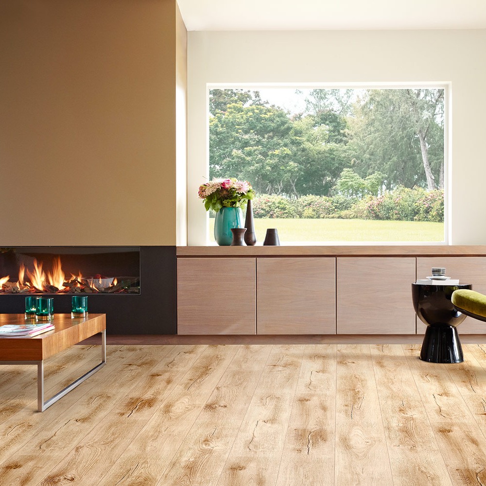Планки ламината имеют фаску только по длинной стороне, а торцевые фаски отсутствуют. Благодаря этому рисунок древесины плавно переходит от одной планки к другой, создавая ощущение бесконечно длинной доски.