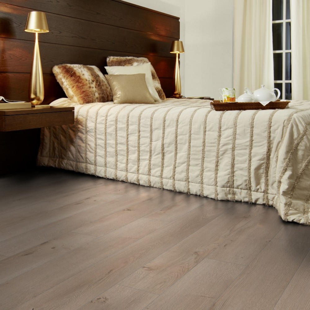 Рельефная поверхность модели имитирует браширование. Причем, рельефными выполнены не только волокна, но и сучки, изображенные на ламинате с фотографической точностью. Дуб Атланта позволяет оформить помещение, использовав декоративность натуральной древесины, и воспользоваться всеми практическими преимуществами ламината — прочностью, влагостойкостью, простотой в уходе.