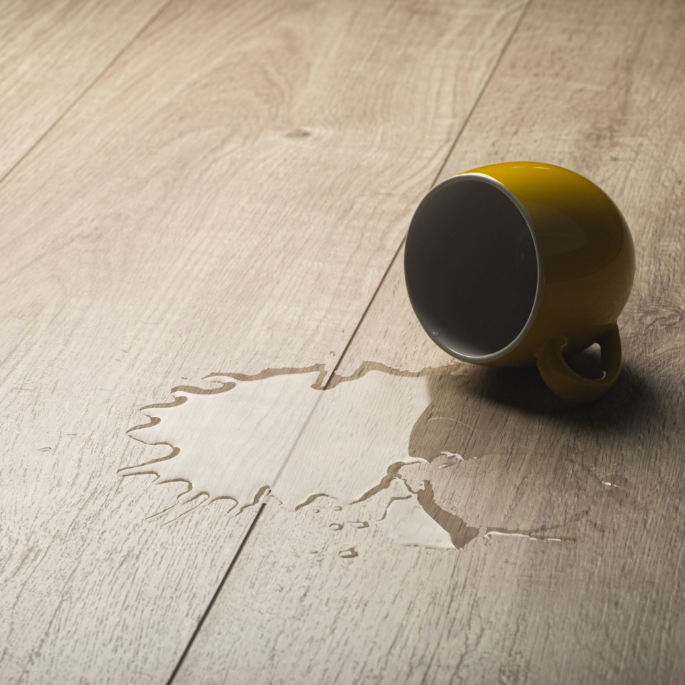 Загрязнения удаляем щеткой или пылесосом. Можно также протирать пол влажной тряпкой с добавкой средства по уходу за ламинатом.Нельзя поливать панели водой, полировать воском, струей водяного пара, пастами или концентрированными моющими средствами. Разлитую на панелях воду следует немедленно удалить.