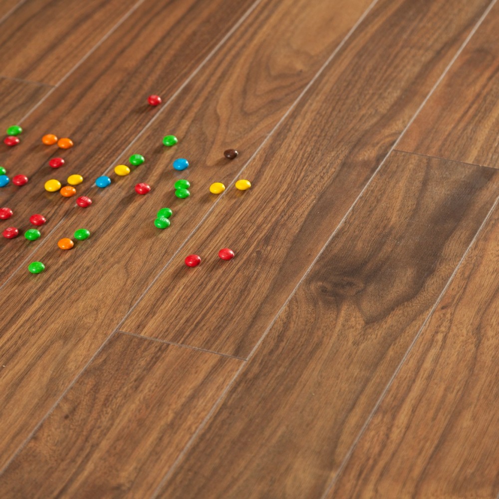 Загрязнения удаляем щеткой или пылесосом. Можно также протирать пол влажной тряпкой с добавкой средства по уходу за ламинатом.Нельзя поливать панели водой, полировать воском, струей водяного пара, пастами или концентрированными моющими средствами. Разлитую на панелях воду следует немедленно удалить.