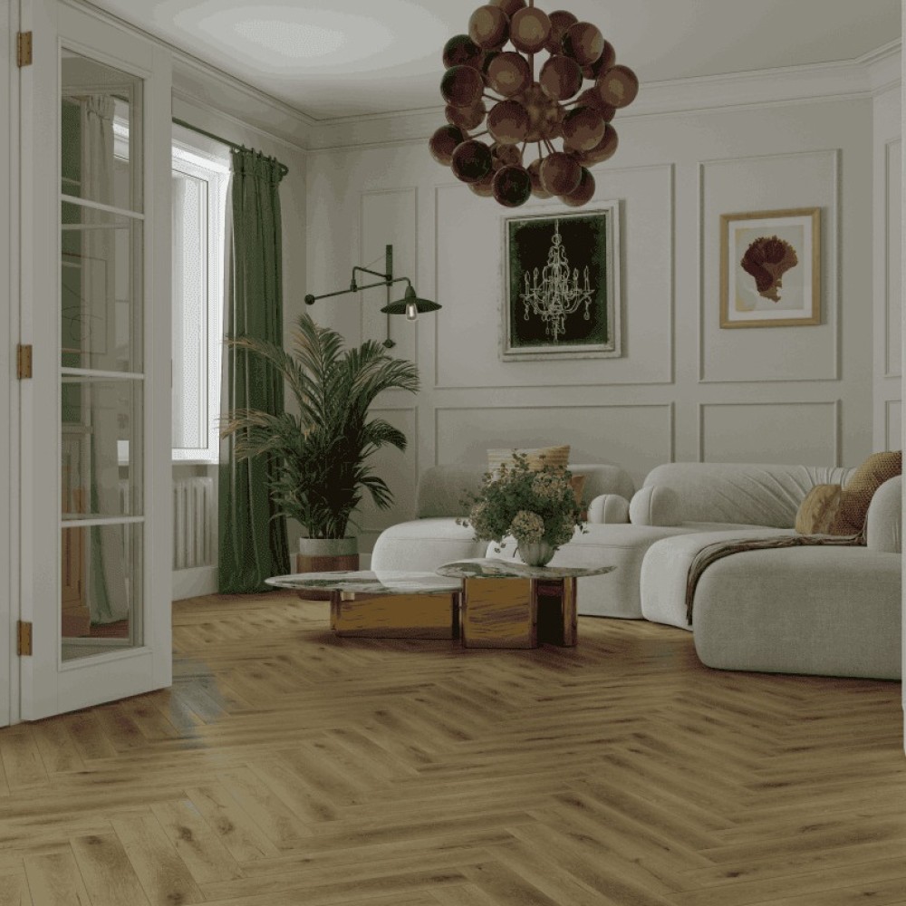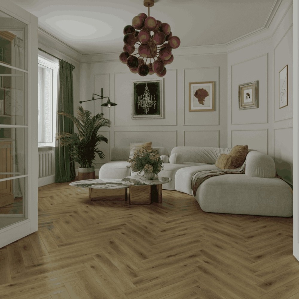 Ламинат Norland Herringbone Elegant 10 Дуб Элла 33 класса создан для жилых и коммерческих помещений с повышенной нагрузкой и интенсивным трафиком, включая офисы, магазины и кафе. Покрытие устойчиво к царапинам, ударам и давлению мебели на колесиках, а наличие V-образной фаски придает ему сходство с натуральным паркетом.