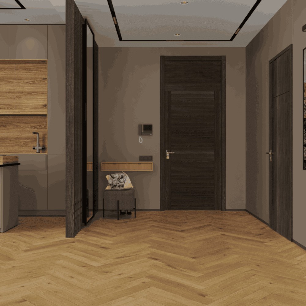 Ламинат Norland Herringbone Elegant 10 Дуб Хайнан 33 класса создан для жилых и коммерческих помещений с повышенной нагрузкой и интенсивным трафиком, включая офисы, магазины и кафе. Покрытие устойчиво к царапинам, ударам и давлению мебели на колесиках, а наличие V-образной фаски придает ему сходство с натуральным паркетом.