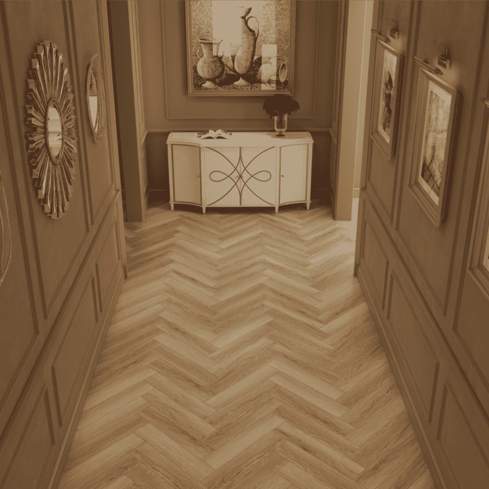 Ламинат Norland Herringbone Elegant Дуб Тинос 33 класса предназначен для жилых и коммерческих помещений с повышенной нагрузкой и интенсивным трафиком, включая офисы, магазины и кафе. Покрытие устойчиво к механическим повреждениям, включая царапины, удары и трение от мебельных колесиков. Кроме того, благодаря V-образной фаске выгодно имитирует натуральный паркет.