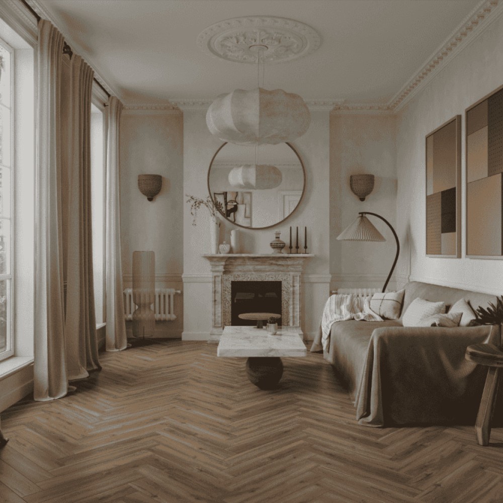 Ламинат Norland Herringbone Elegant Дуб Велла 33 класса предназначен для жилых и коммерческих помещений с повышенной нагрузкой и интенсивным трафиком, включая офисы, магазины и кафе. Покрытие устойчиво к механическим повреждениям, включая царапины, удары и трение от мебельных колесиков. Кроме того, благодаря V-образной фаске выгодно имитирует натуральный паркет.