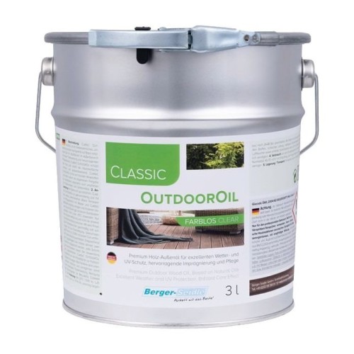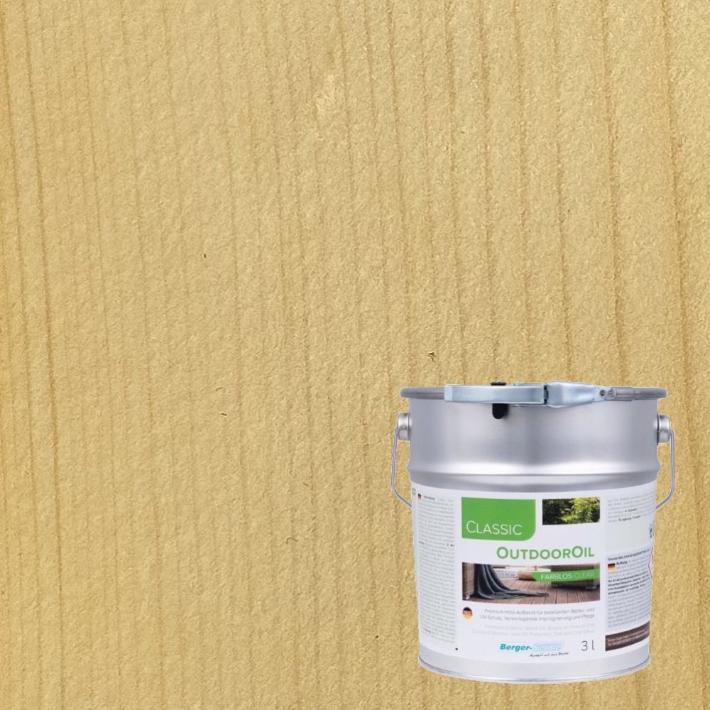 Berger-Seidle OutdoorOil — масло для наружных работ с высокими показателями проникновения в толщину древесины. Защищает дерево от влаги и загрязнений. Подходит для террасной доски, садовой мебели, беседок и покрытий из ДПК.