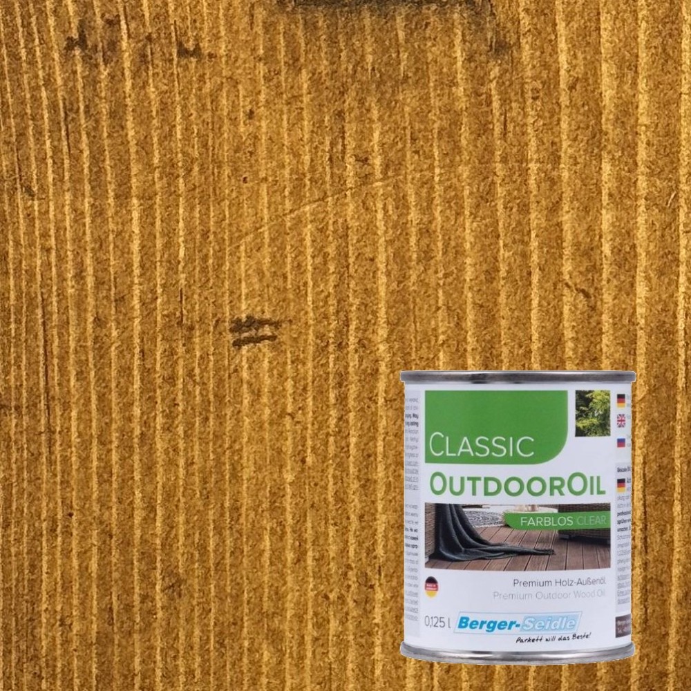 Berger-Seidle OutdoorOil — масло для наружных работ с высокими показателями проникновения в толщину древесины. Защищает дерево от влаги и загрязнений. Подходит для террасной доски, садовой мебели, беседок и покрытий из ДПК.