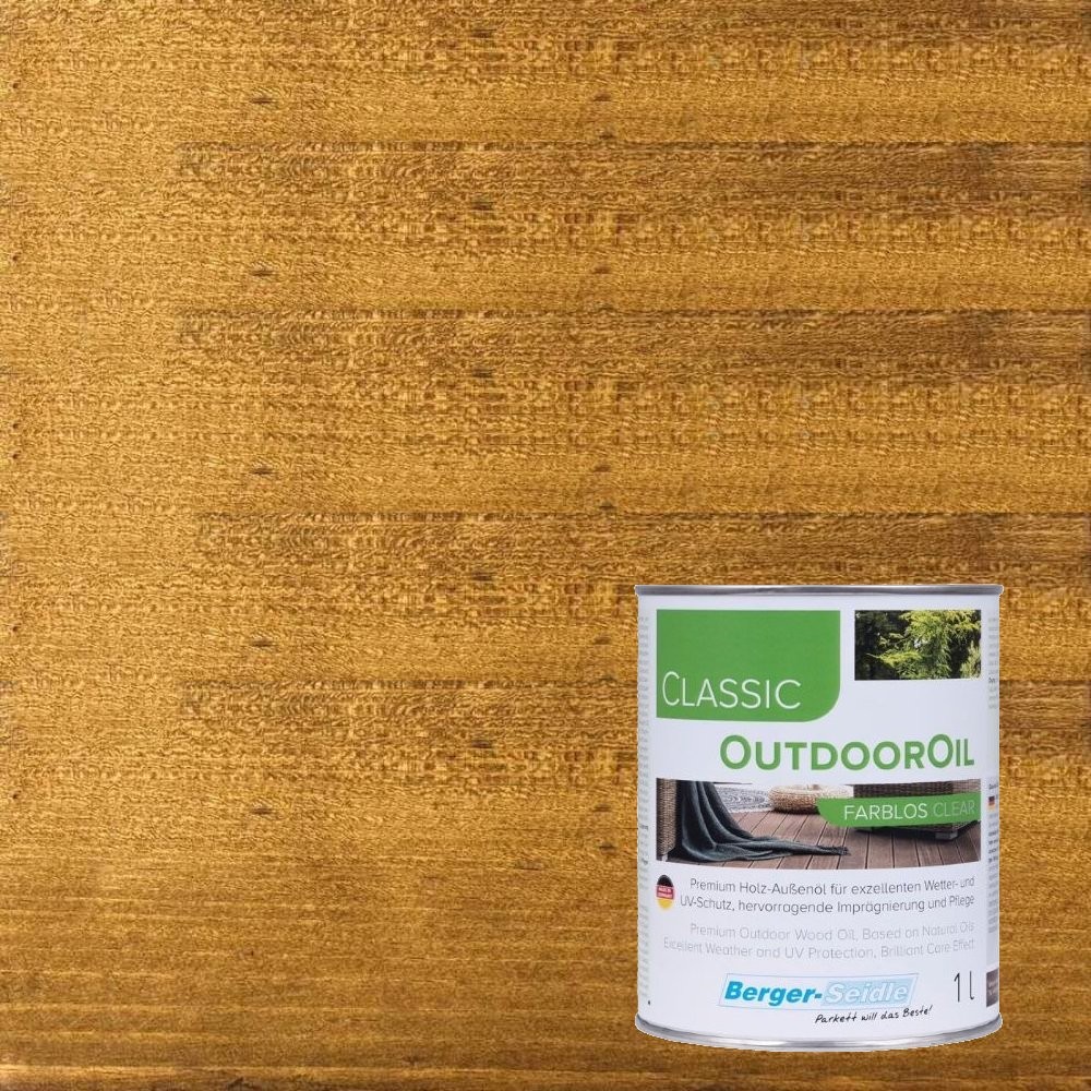 Berger-Seidle OutdoorOil — масло для наружных работ с высокими показателями проникновения в толщину древесины. Защищает дерево от влаги и загрязнений. Подходит для террасной доски, садовой мебели, беседок и покрытий из ДПК.