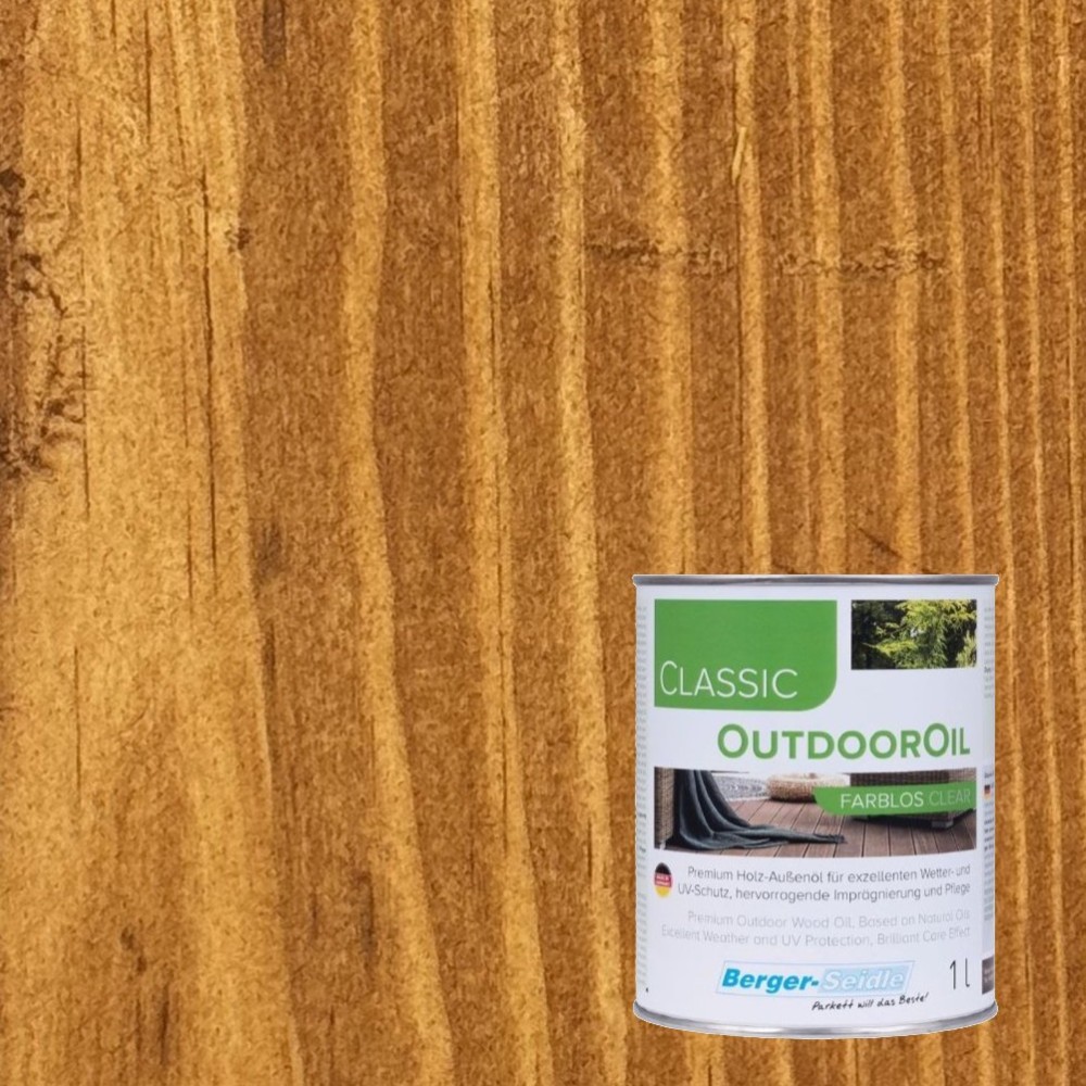 Berger-Seidle OutdoorOil — масло для наружных работ с высокими показателями проникновения в толщину древесины. Защищает дерево от влаги и загрязнений. Подходит для террасной доски, садовой мебели, беседок и покрытий из ДПК.