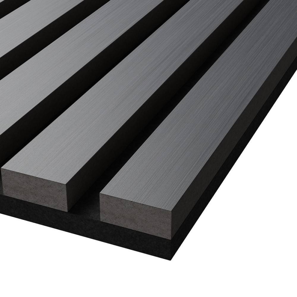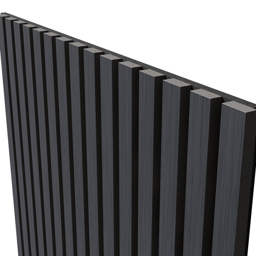 Акустическая стеновая панель Cosca Decor Дуб Антрацит Темно-серый применяется во внутренней отделке стен для создания акустического комфорта без эха и внешнего шума. Основа панели — акустический войлок 9 мм, на котором закреплены декоративные рейки из МДФ.