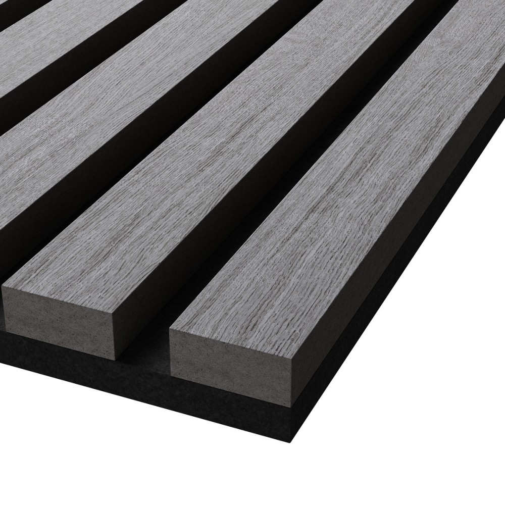 Акустическая стеновая панель Cosca Decor Дуб Ардженто Светло-серый применяется во внутренней отделке стен для создания акустического комфорта без эха и внешнего шума. Основа панели — акустический войлок 9 мм, на котором закреплены декоративные рейки из МДФ.
