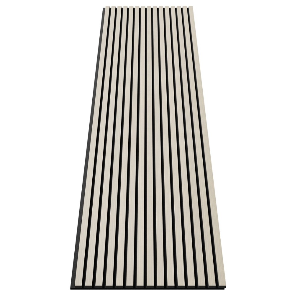 Акустическая стеновая панель Cosca Decor Дуб Клэр Светлый применяется во внутренней отделке стен для создания акустического комфорта без эха и внешнего шума. Основа панели — акустический войлок 9 мм, на котором закреплены декоративные рейки из МДФ.