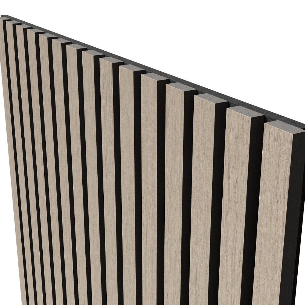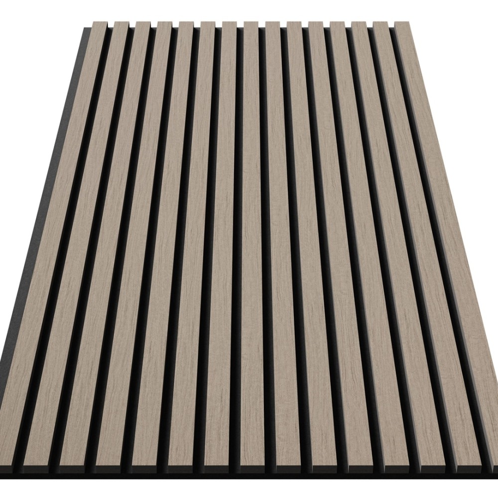 Акустическая стеновая панель Cosca Decor Дуб Латте Бежевый применяется во внутренней отделке стен для создания акустического комфорта без эха и внешнего шума. Основа панели — акустический войлок 9 мм, на котором закреплены декоративные рейки из МДФ.