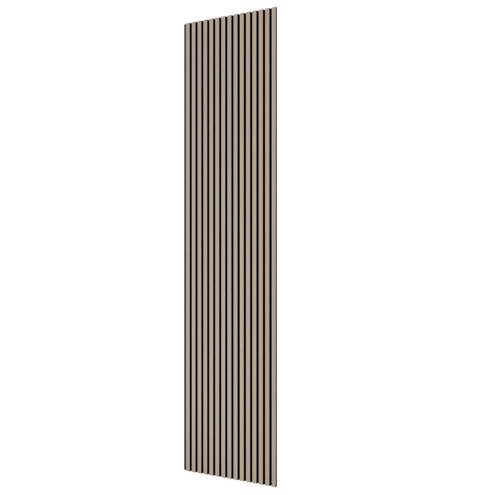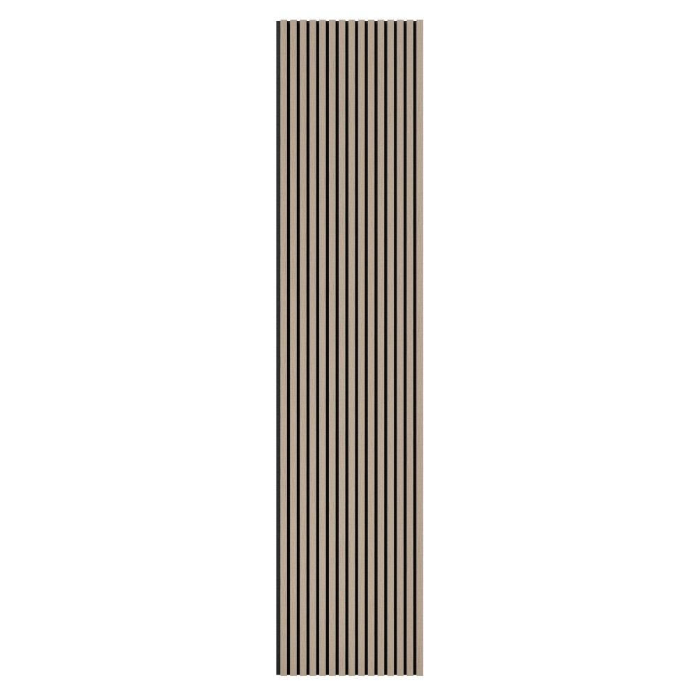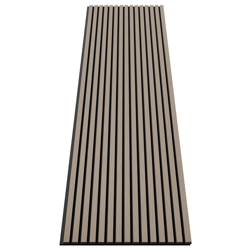 Акустическая стеновая панель Cosca Decor Дуб Латте Бежевый применяется во внутренней отделке стен для создания акустического комфорта без эха и внешнего шума. Основа панели — акустический войлок 9 мм, на котором закреплены декоративные рейки из МДФ.