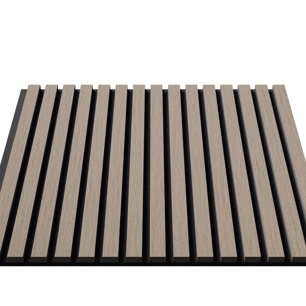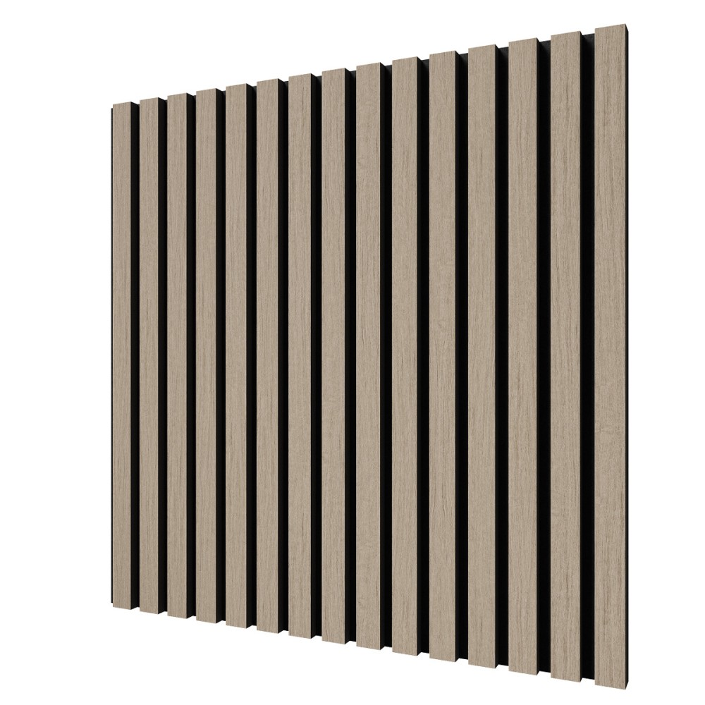 Акустическая стеновая панель Cosca Decor Дуб Латте Бежевый применяется во внутренней отделке стен для создания акустического комфорта без эха и внешнего шума. Основа панели — акустический войлок 9 мм, на котором закреплены декоративные рейки из МДФ.