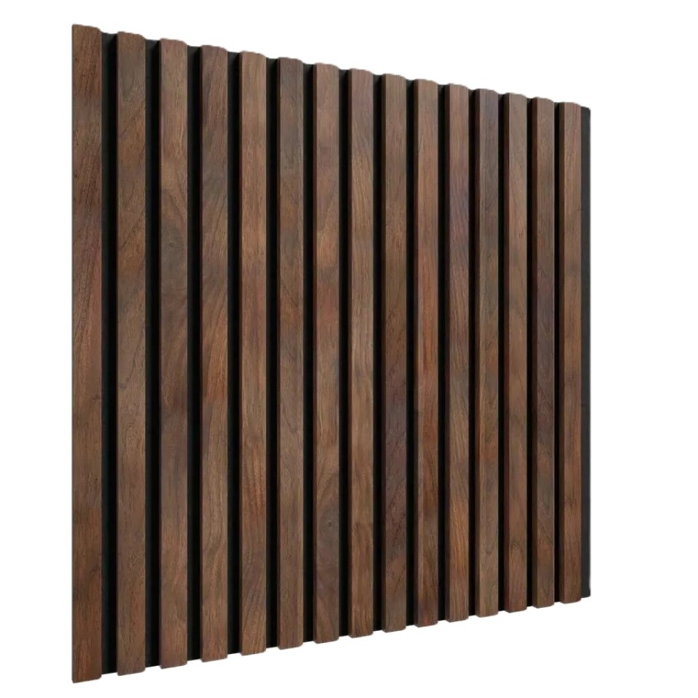 Акустическая стеновая панель Cosca Decor Дуб Барон Темный применяется во внутренней отделке стен для создания акустического комфорта без эха и внешнего шума. Основа панели — антибактериальный акустический войлок 9 мм, на котором закреплены 15 декоративных реек из МДФ размером 25×10 мм.