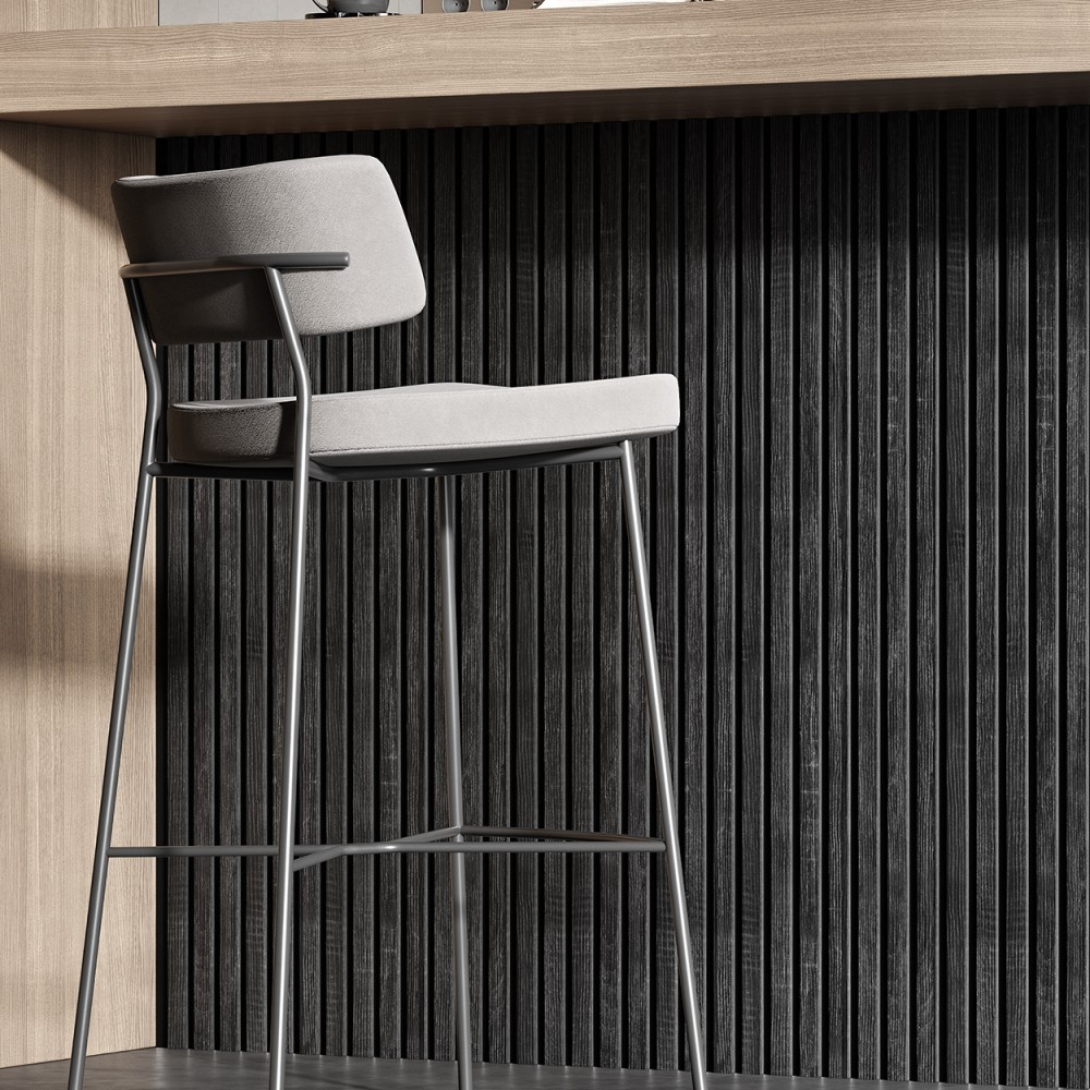 Поверхность реек облицована «экошпоном», который визуально и тактильно имитирует древесину дуба. Монтаж с помощью жидких гвоздей или саморезов со шляпкой в цвет войлока.