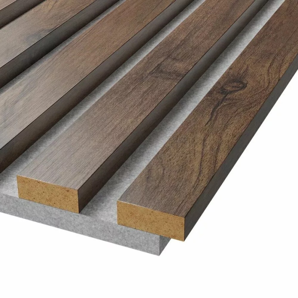 Поверхность реек облицована «экошпоном», который визуально и тактильно имитирует древесину дуба. Монтаж с помощью жидких гвоздей или саморезов со шляпкой в цвет войлока.