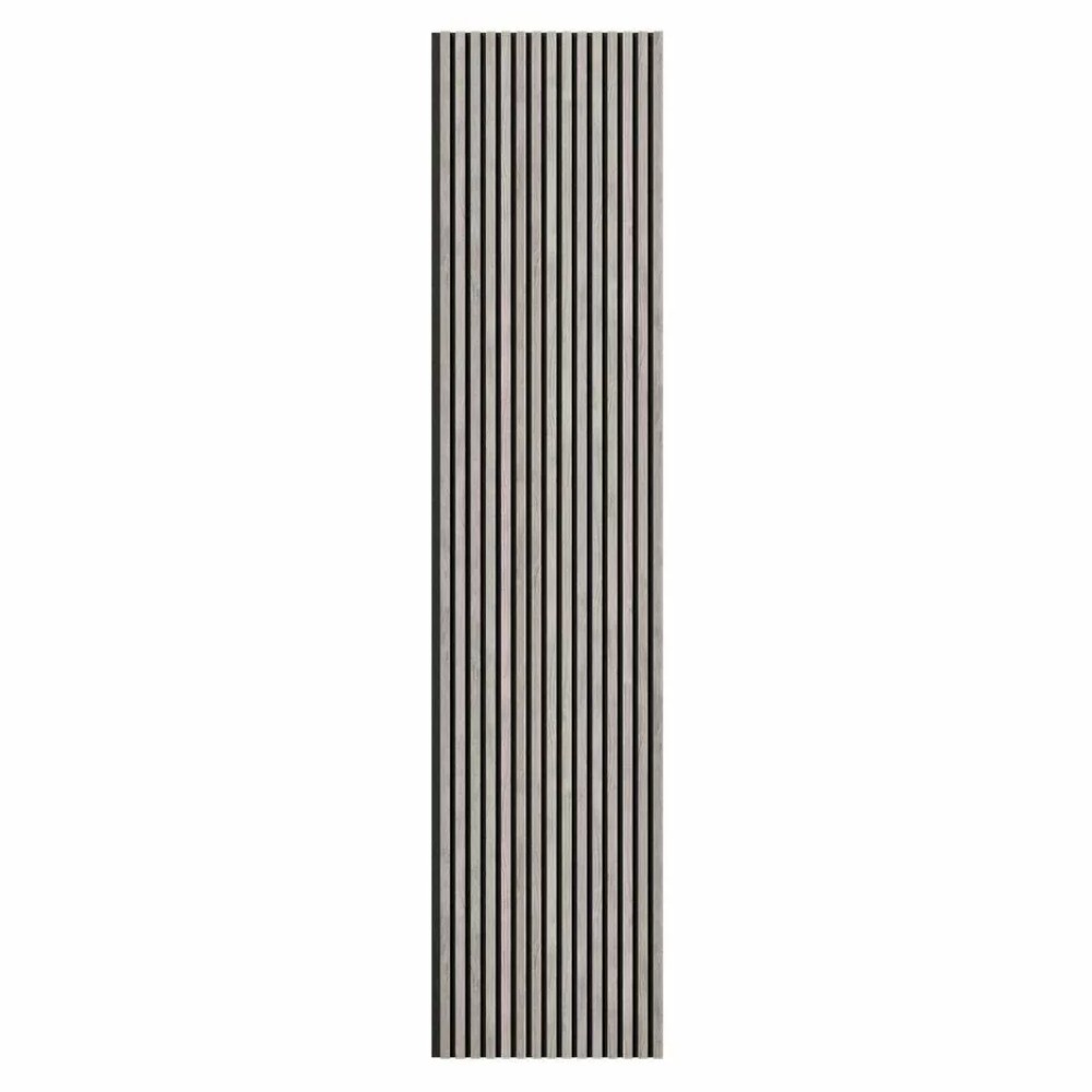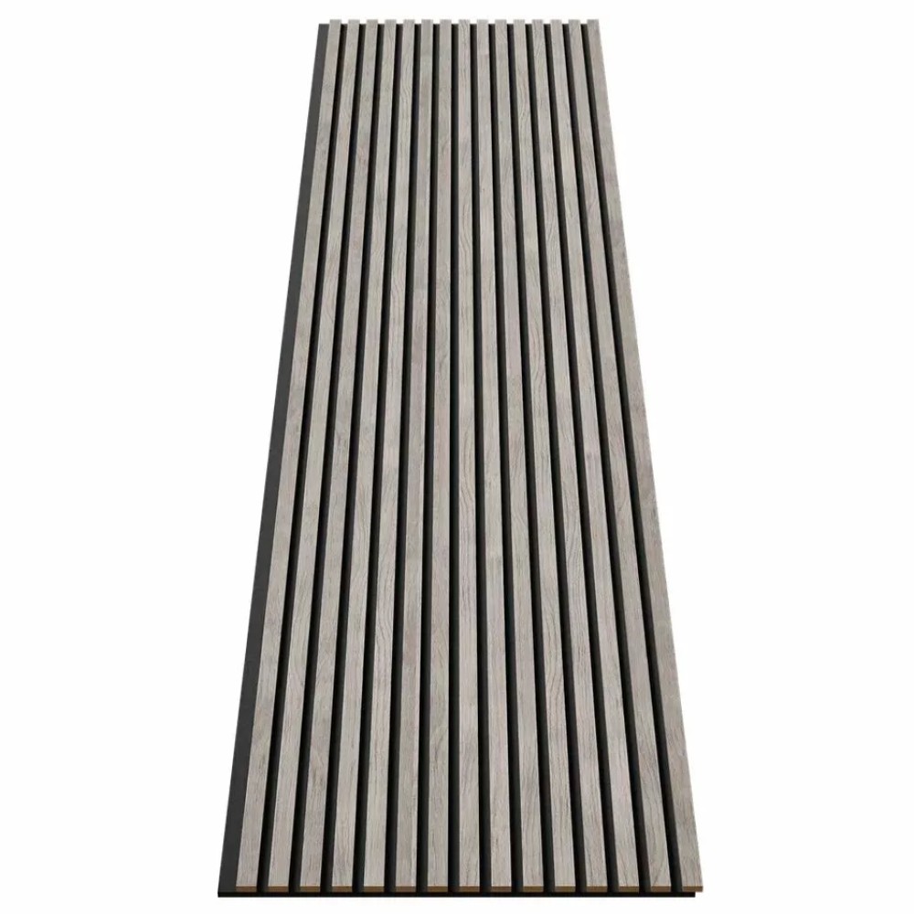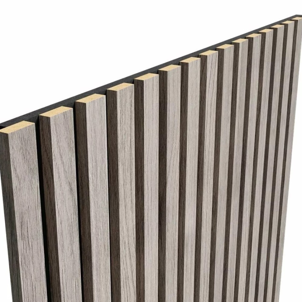 Акустическая стеновая панель Cosca Decor Дуб Старинный Светло-серый применяется во внутренней отделке стен для создания акустического комфорта без эха и внешнего шума. Основа панели — антибактериальный акустический войлок 9 мм, на котором закреплены 15 декоративных реек из МДФ размером 25×10 мм.