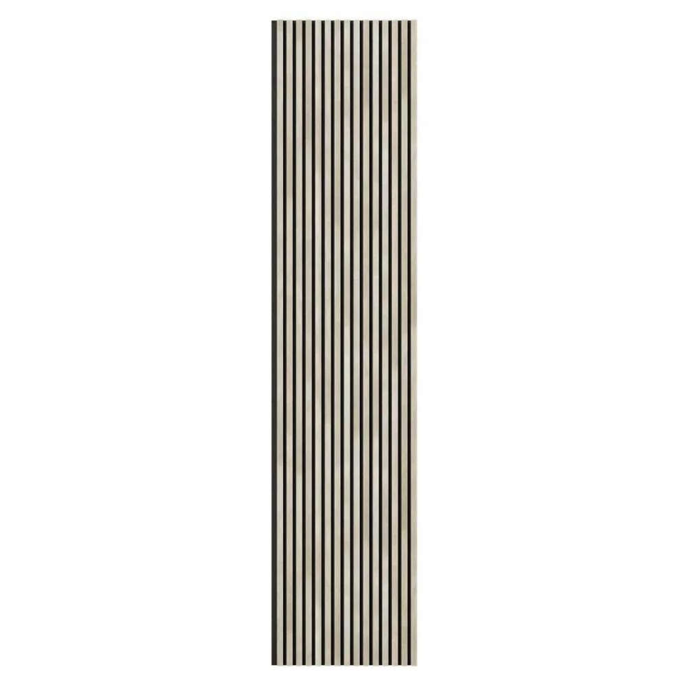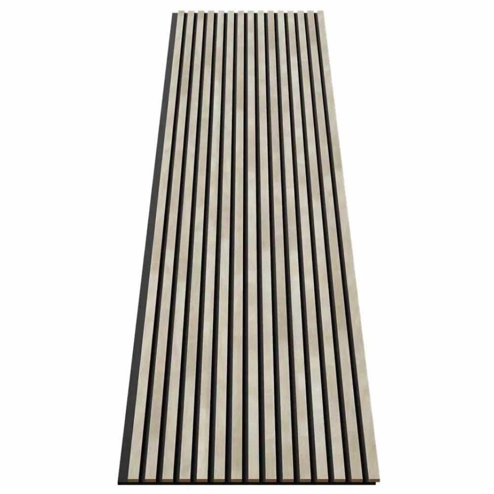 Поверхность реек облицована «экошпоном», который визуально и тактильно имитирует древесину ясеня. Монтаж с помощью жидких гвоздей или саморезов со шляпкой в цвет войлока.