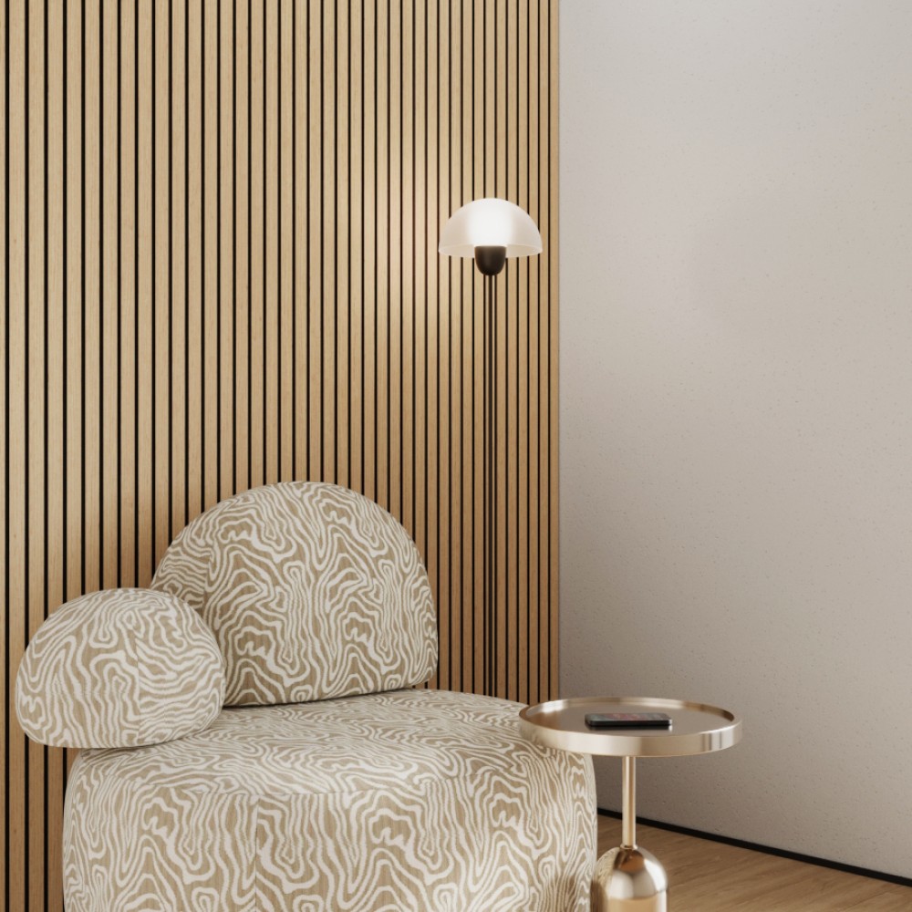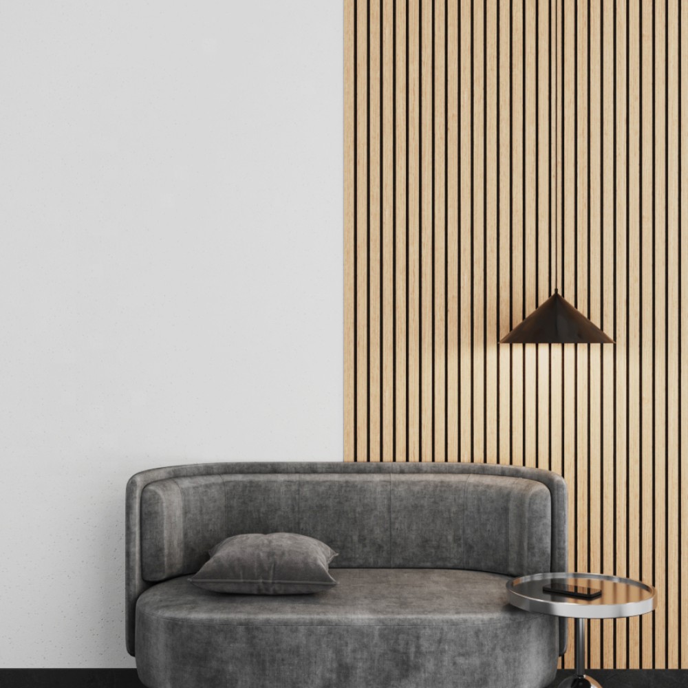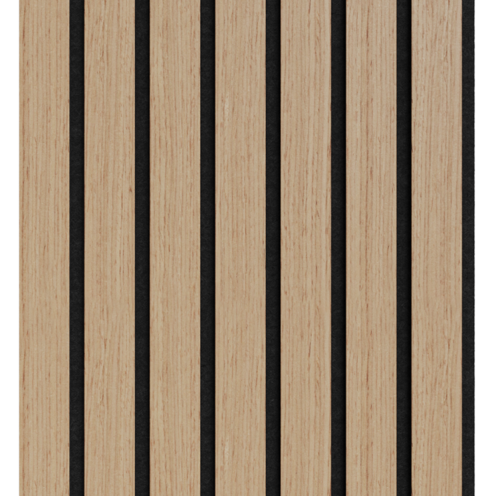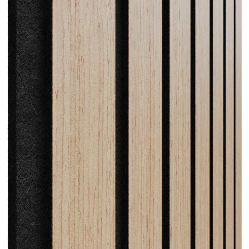 В основе каждой панели войлочный слой, за счет которого достигается высокий уровень шумопоглощения. Верхняя часть панелей — рейки из МДФ, покрытые натуральным шпоном древесины. Для сохранения цвета и структуры шпона не рекомендуется установка панелей в местах с прямыми солнечными лучами или повышенной влажностью.