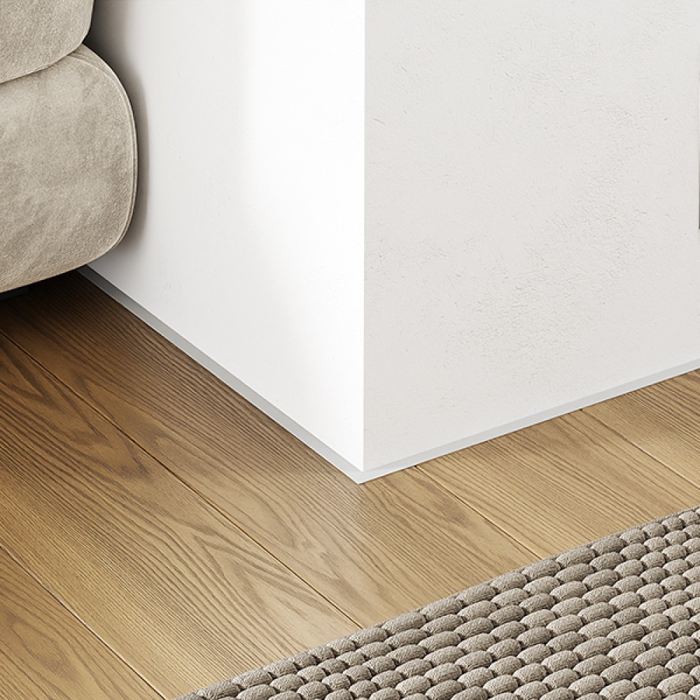 Микроплинтус Modern Decor RAL 7047 Серый телегрей 4 закрывает компенсационный зазор между стеной и чистовым полом. Подходит для напольных покрытий с небольшим технологическим швом, таких как кварцвинил, а также для скрытых деверей. Не предназначен для напольных покрытий высотой менее 5 мм (включая подложку) и шириной технологического шва более 9 мм. Длина плинтуса — 2500 мм, но фактическая длина — 2560 мм (дополнительная длина предназначена для торцевания и подготовки угловой стыковки).