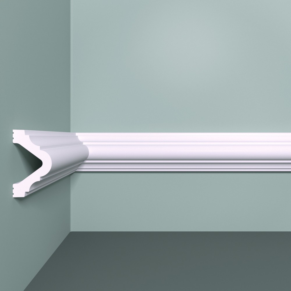 Поверхность молдинга загрунтована и готова к покраске. Монтаж с помощью клея.