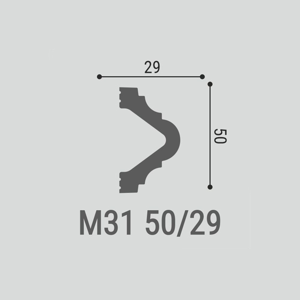 Молдинг под покраску Bello Deco М31 изготовлен из полистирола высокой плотности — ударопрочного и влагостойкого материала. Подходит для декорирования стен в любых комнатах, в том числе в ванной или на кухне.