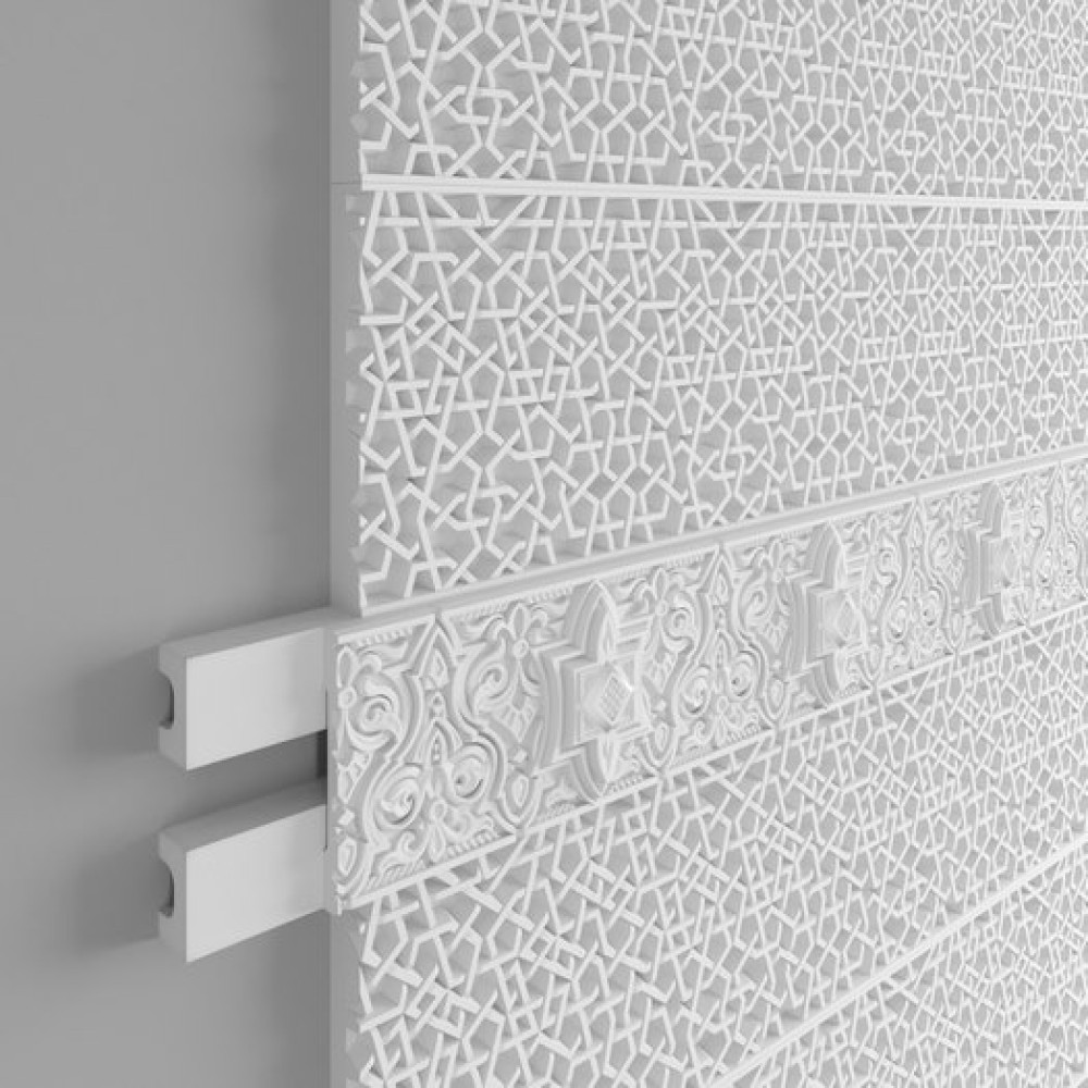 Поверхность изделия уже покрыта грунтом, поэтому краска ляжет ровно с первого слоя. Монтаж производится с помощью монтажного клея.