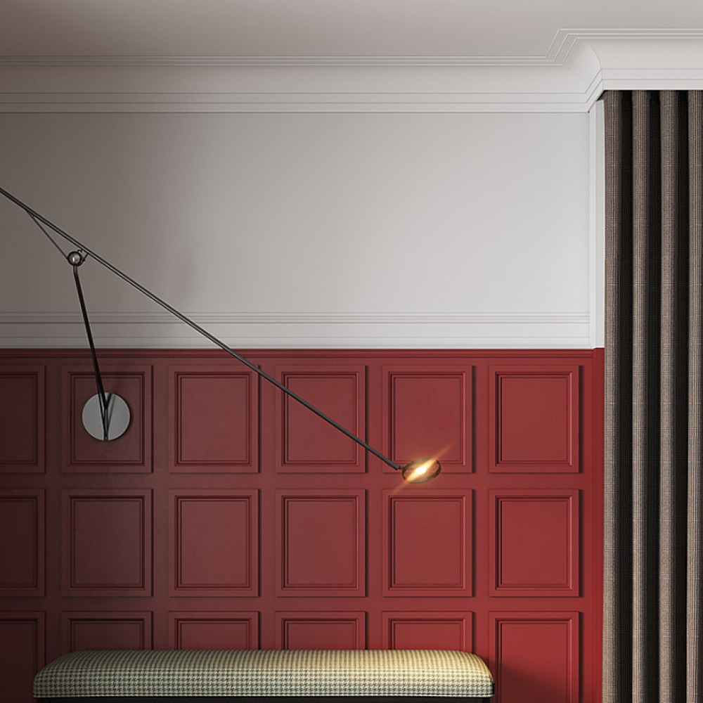 Молдинг уже загрунтован и полностью готов к финишной покраске. Монтаж производится с помощью монтажного клея, а между собой молдинги крепятся на стыковочный клей.