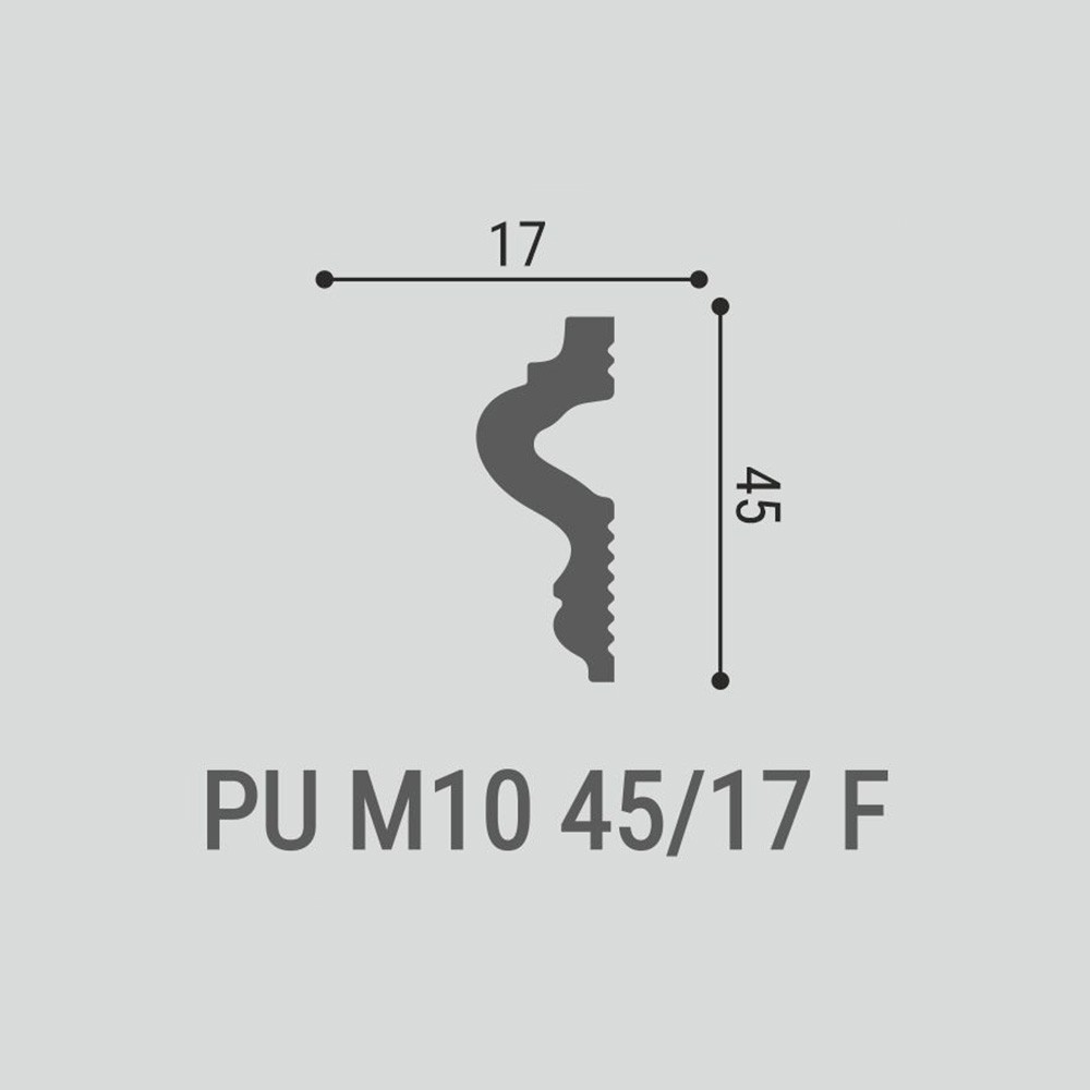 Молдинг под покраску Bello Deco М10F изготовлен из полиуретана — влагостойкого и гибкого материала. Подходит для декорирования стен в любых комнатах, в том числе в ванной или на кухне.