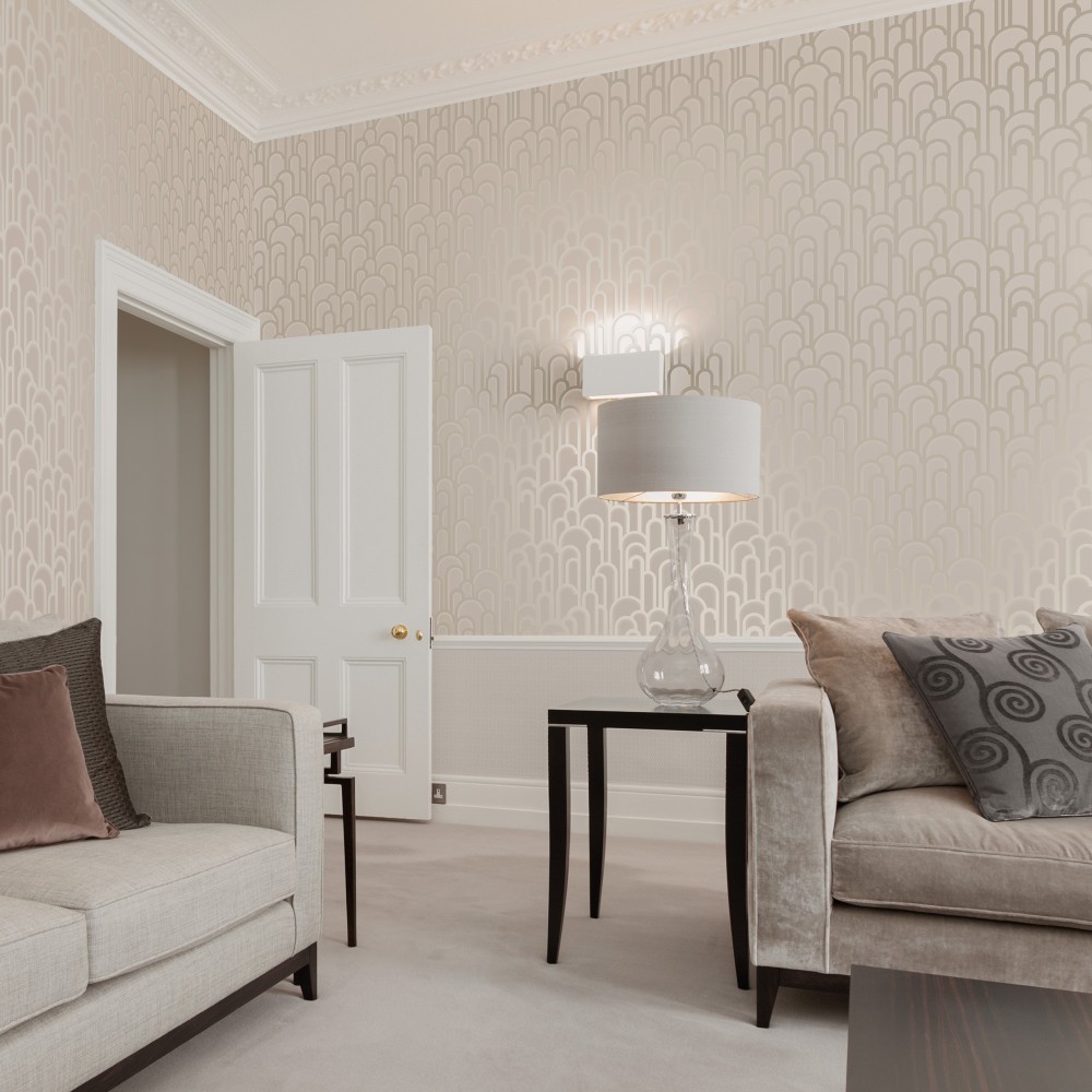 На рисунке обоев Arcade GC7 002 изображены переплетающиеся арки, которые олицетворяют небесный свод. Во многих культурах арка — это символ небесного благословения и начала новой жизни.