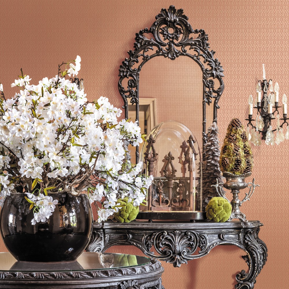 В дизайне обоев Treillage GC3 004 раскрывается тема художественной ковки. В рисунке отчетливо виден мотив изящной кованой решетки.