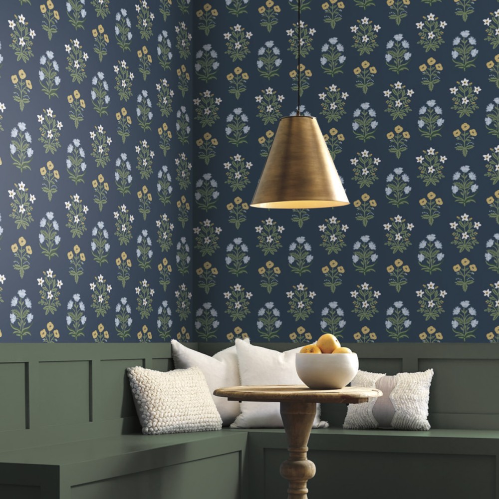 Нежные букетики на полотне обоев York Mughal Rose создадут цветочное настроение в любом интерьере. Декор RP7351 отличается металлизированным эффектом.Характеристики